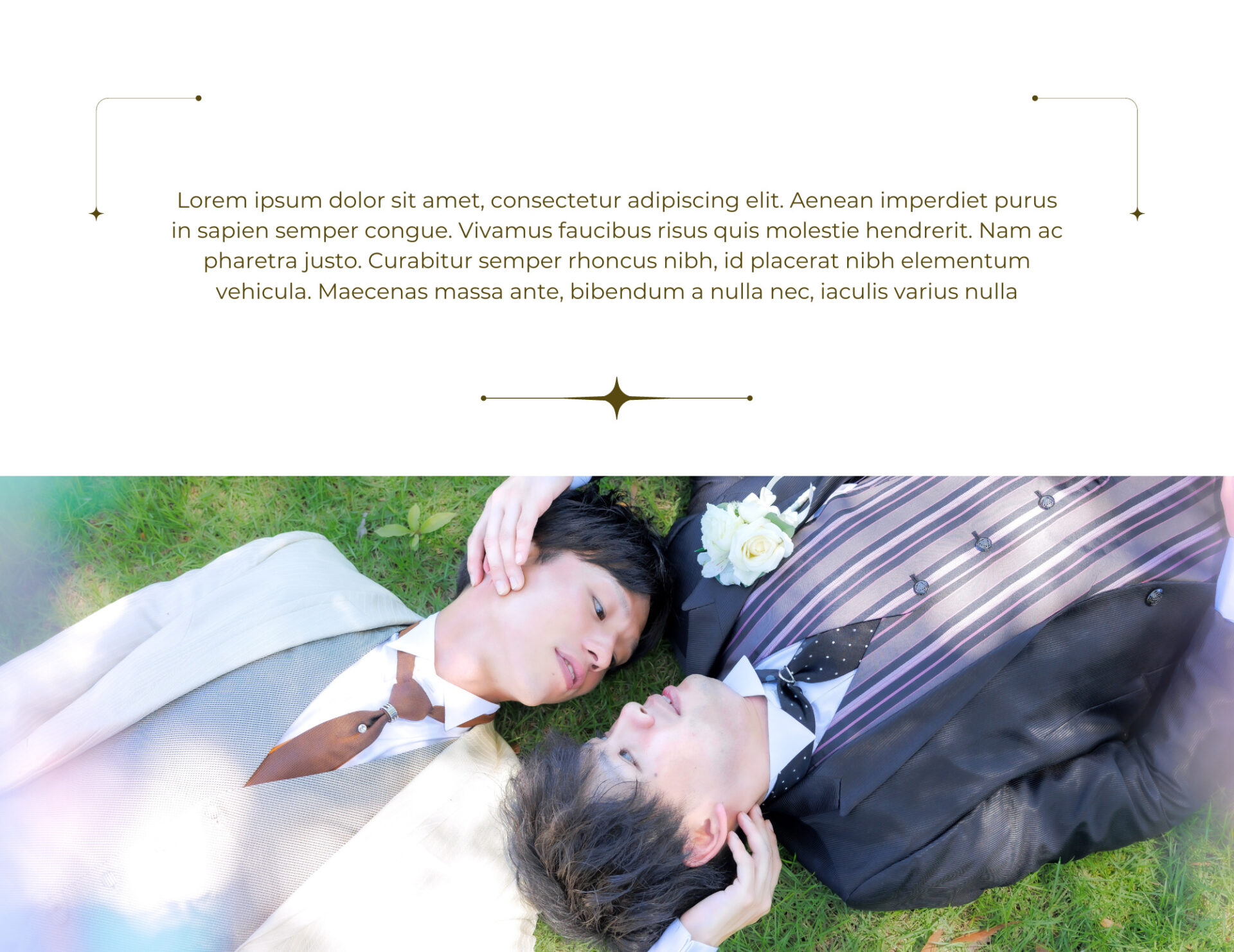 性的マイノリティの方だけではく“再婚同士の方”“年齢を重ねてからご結婚された方”“お式は挙げない方”などフォトウエディングをご希望されるカップルには様々な形があります。