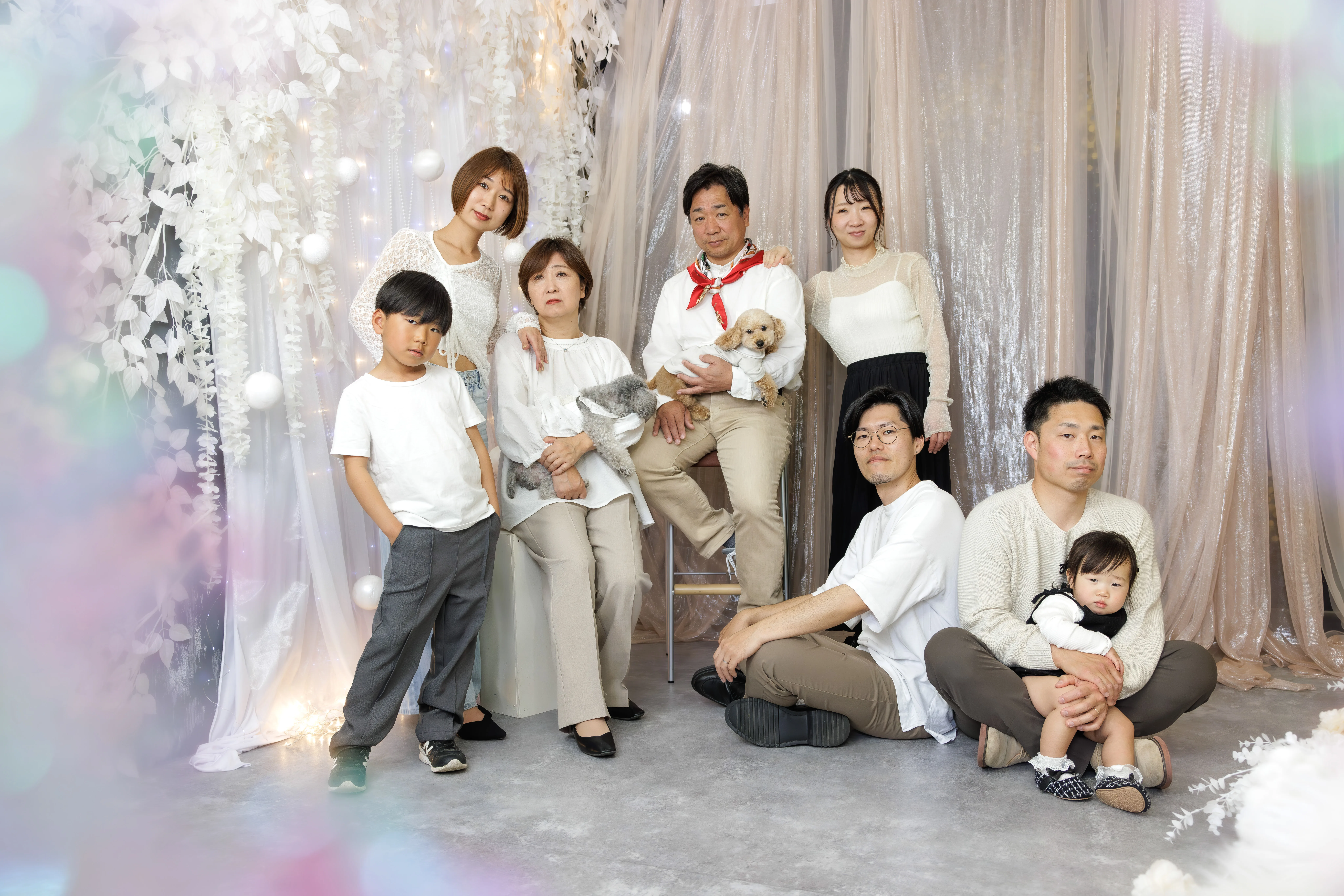 - 幅広い年齢層に対応:お子さまの成長記録はもちろん、祖父母さまを交えた三世代フォトも人気です。