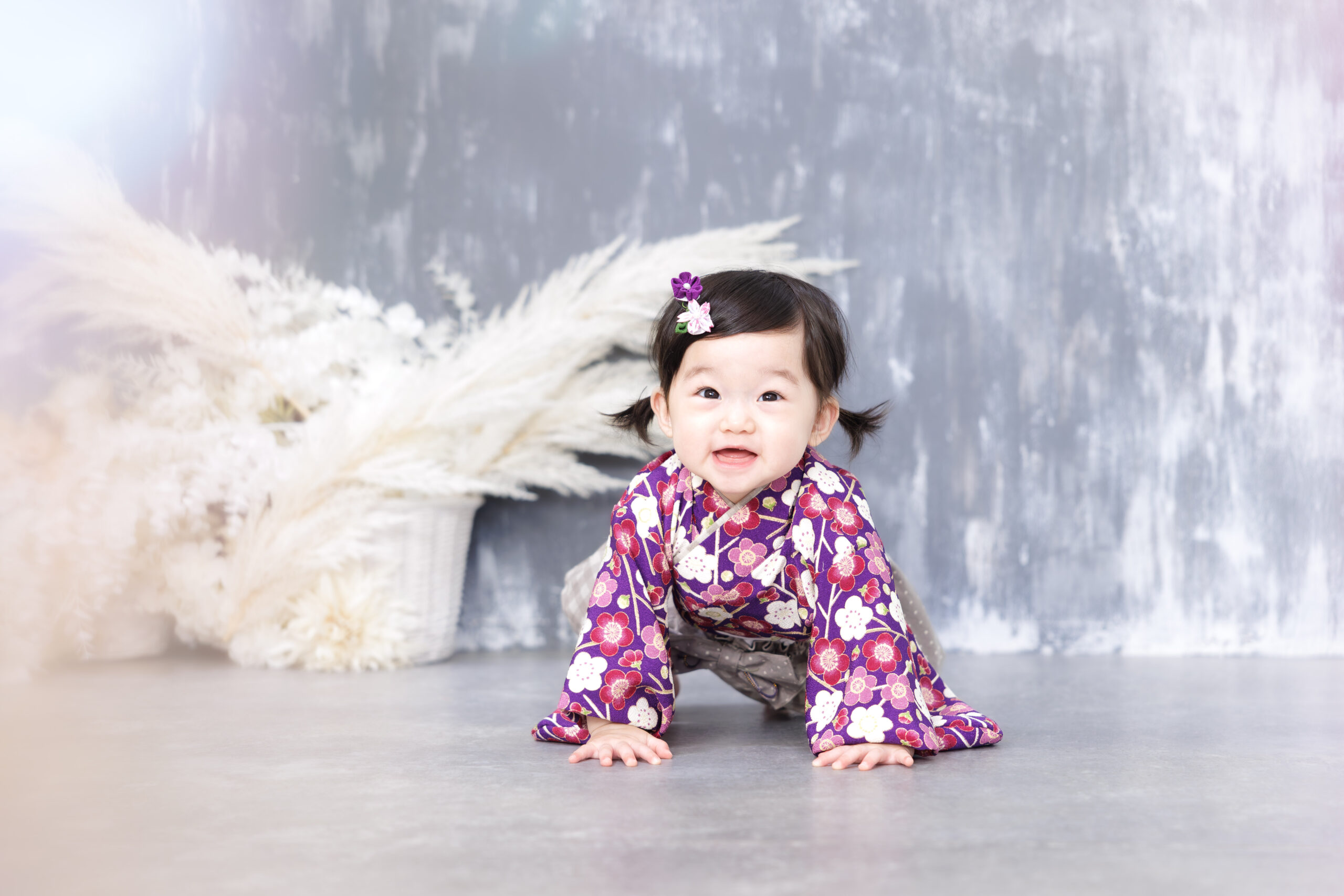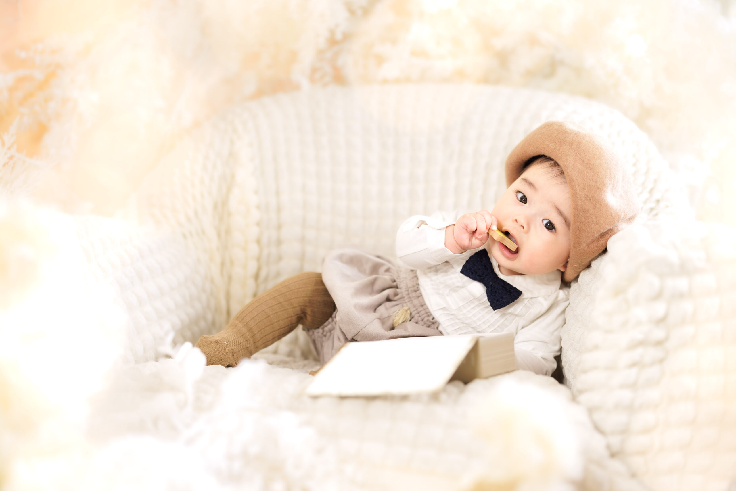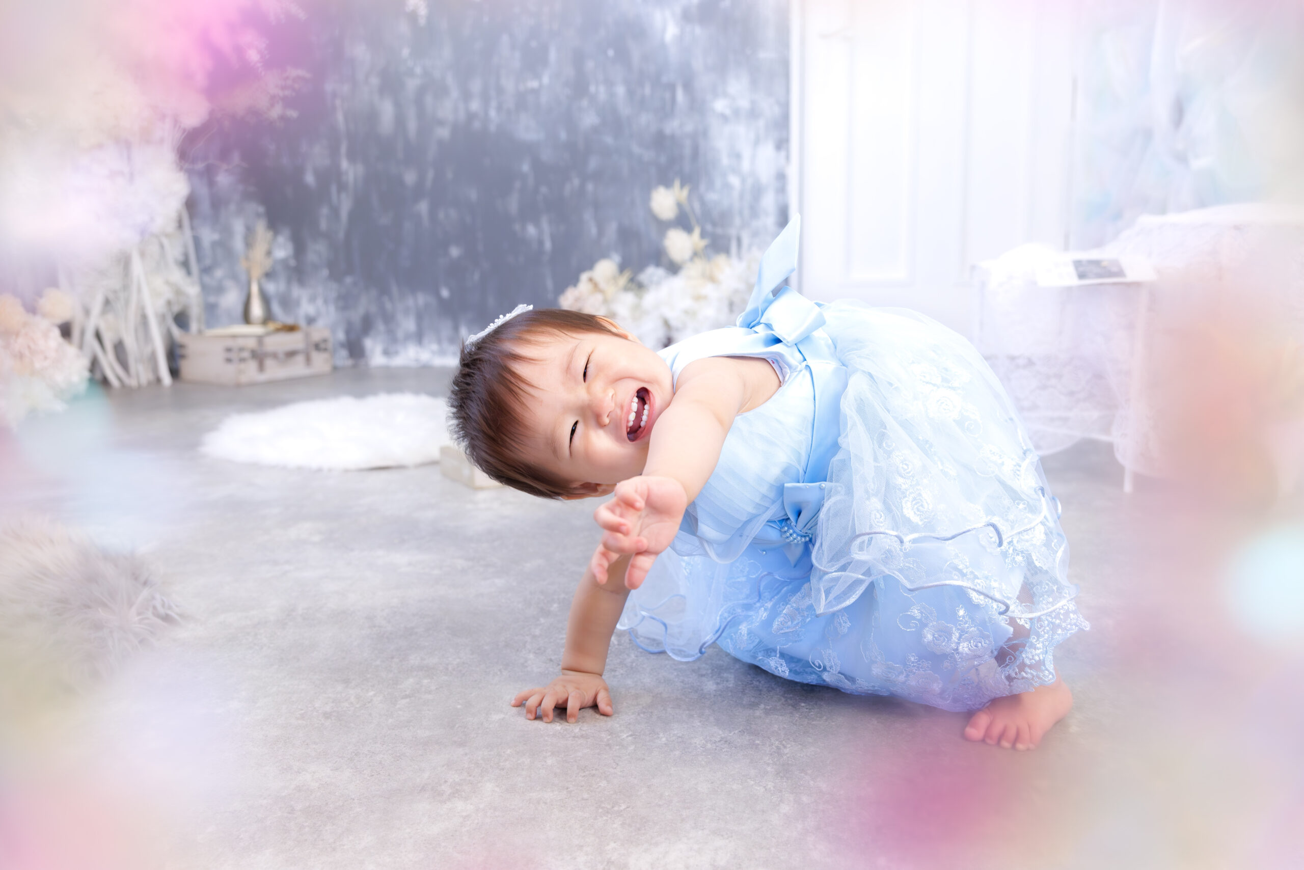 1歳さんはたっちが出来たり出来なかったり、歩けたり歩けなかったり、人見知りがあったり無かったり、お着替えが嫌いだった平気だったりとお子様によって千差万別な年ごろです。撮影に来てくださったお子様が出来る事で撮影の内容も少し変えさせていただいています。また、パパママにたくさんご協力いただき、楽しい撮影空間を作っていきます。