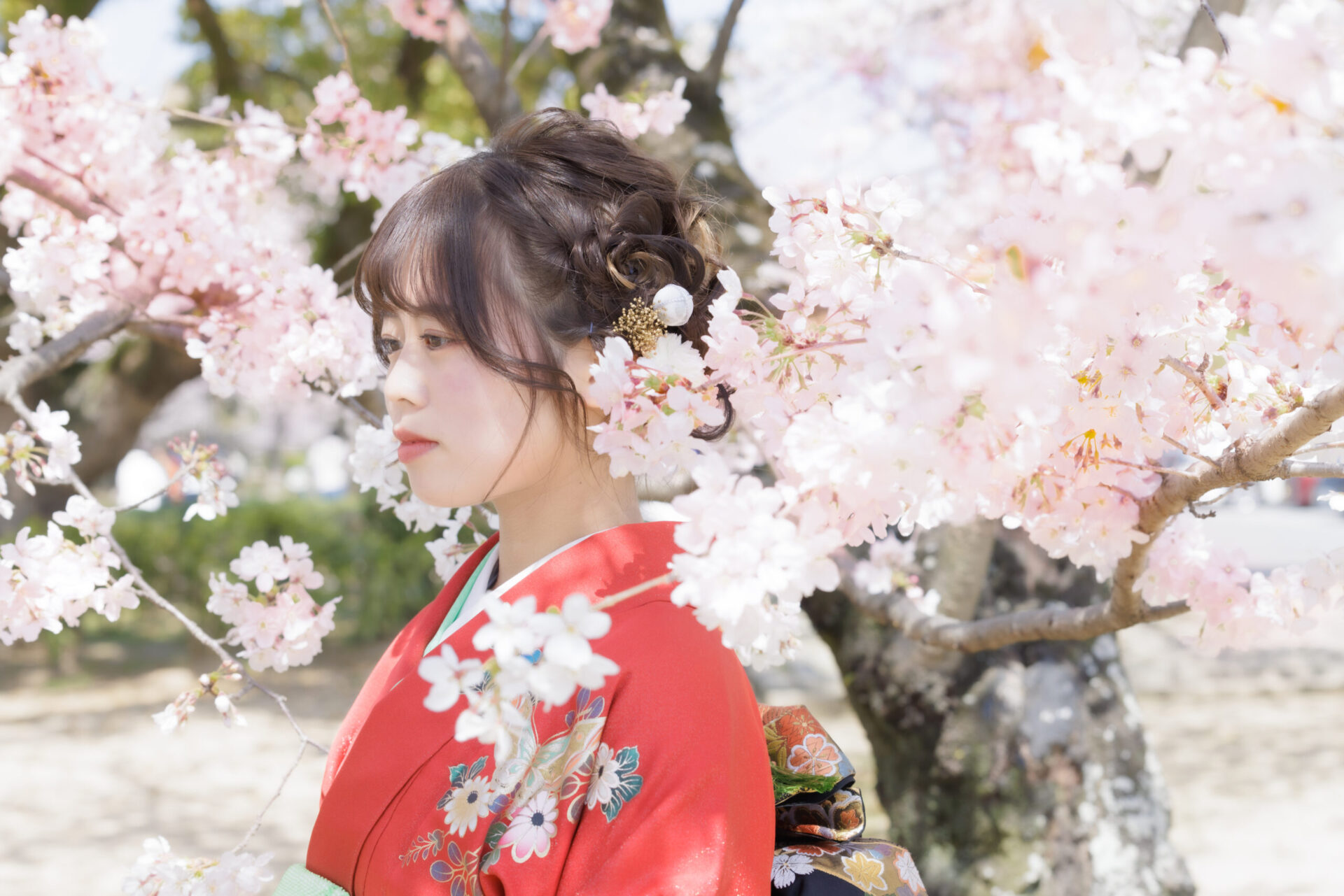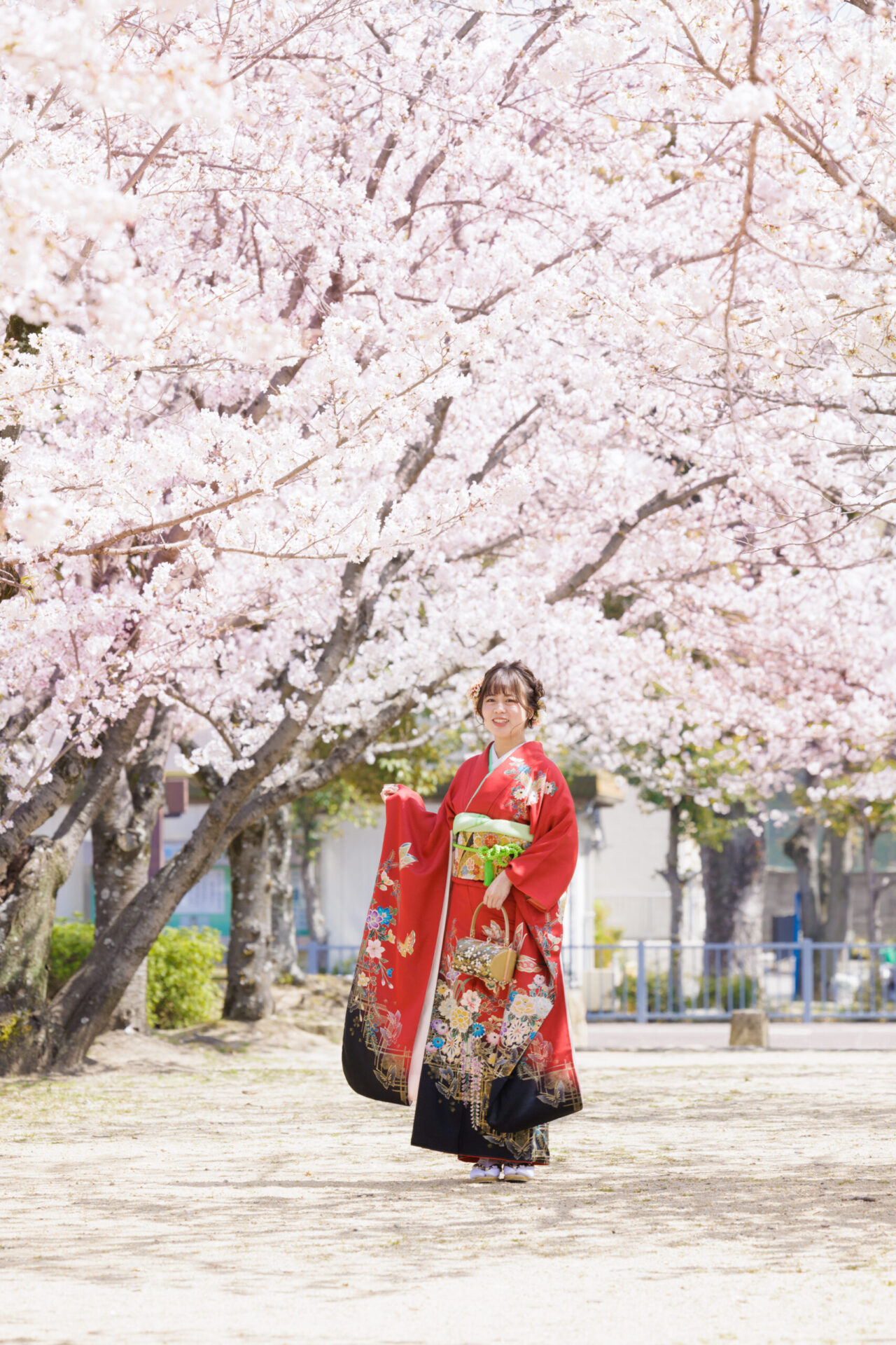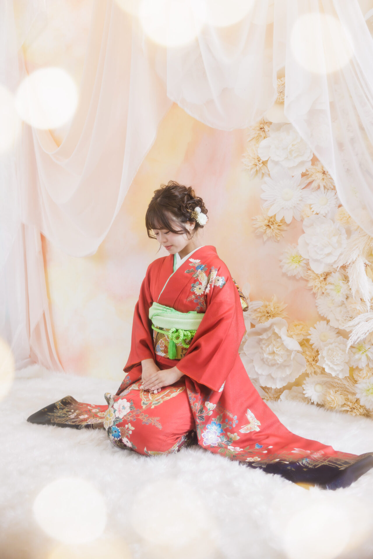 スタジオでもロケーション撮影でも晴れ姿の 成人振袖 撮影お受けしております。姫路では満開の桜やレトロな姫路美術館、神社で和風な撮影も出来ます♪