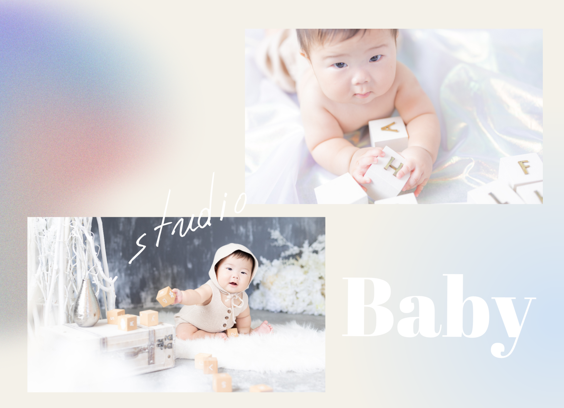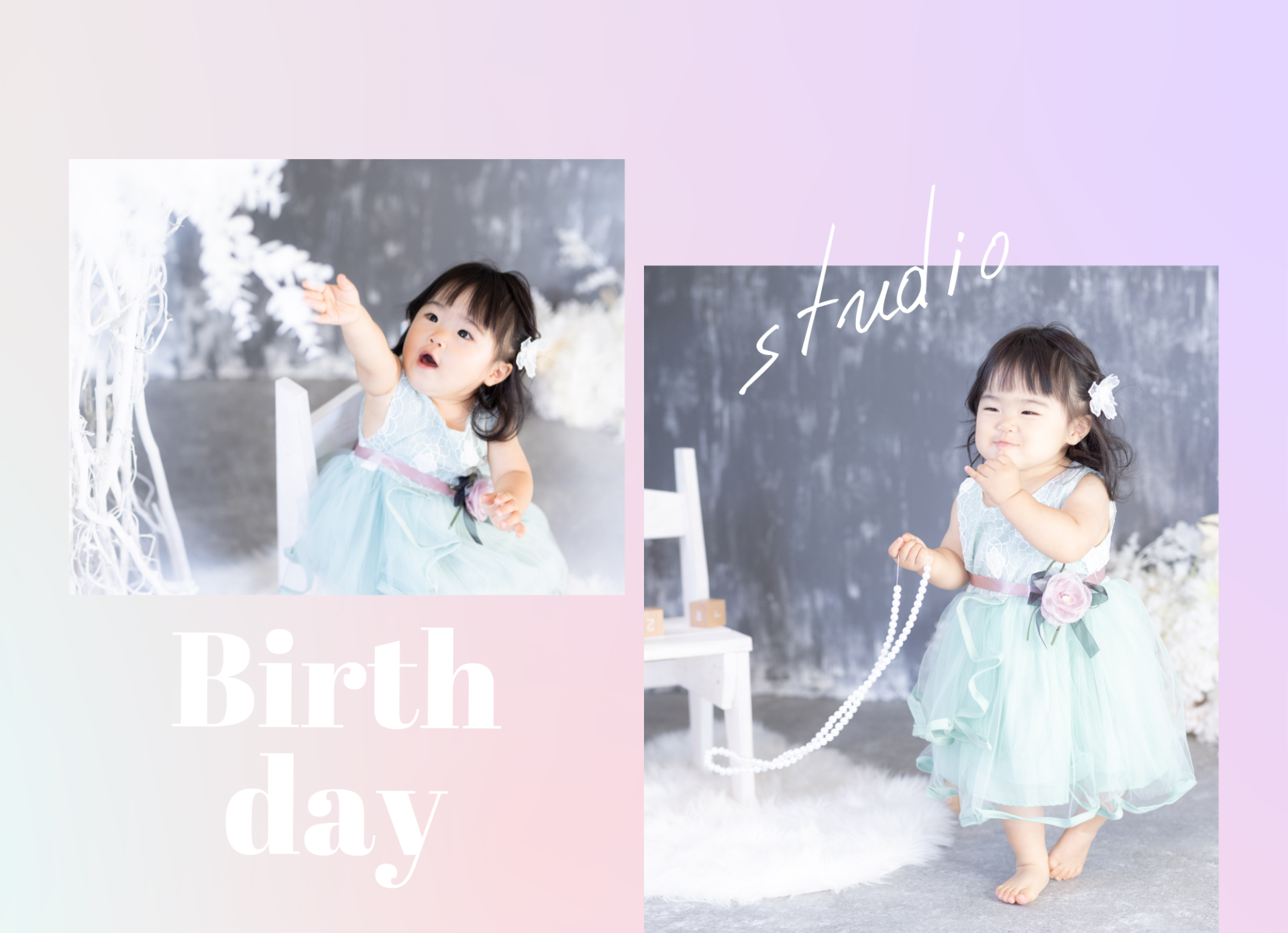バースデーの撮影ではロケだと自由でナチュラルな動きと雰囲気・スタジオだと小物もたくさん使った特別な雰囲気でお撮りできます★