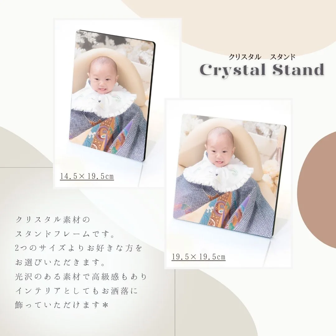 インテリアとして飾っていただけるクリスタルスタンド付きなのでとってもお得❣️ このお安くてお得な機会にぜひフォトファクトリーラルに遊びに来てください♡赤ちゃんのお出かけ遊び先として穴場で、パパママにとっては非日常の楽しい空間間違いなし★普段は写真に参加しにくい夏休みに入ったごきょうだいとも撮影OK♪